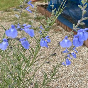 おはようございます👋 サルビア アズレア💙 1m程に伸びた先に小さな青いお花が 咲いています💙 ゆらゆらする姿もとっても可愛いです😆