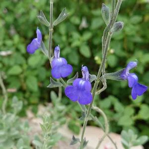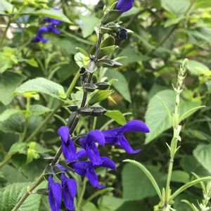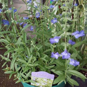 サルビア アズレアが咲き始めましたよ💓 ガラニチカからバトンタッチで満開を迎えて行くアズレア 夏が終わって秋への移り変わりを感じます お花の形はまるでチェリーセージですね😊