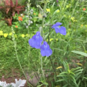 こんにちは*ˊᵕˋ* 今日は時折晴れ間がありながらも曇りがちな天気の1日でした。今、夕立なのか雨が降り始めました😅 今日のpicは、サルビア ’アズレア’。 別名 スカイブルーセージ、ブルーセージ、プレーリーセージ など。 名前のアズレアは、空色と言う意味らしく、名前の通り、スカイブルーの花が暑い夏の中、爽やかさを演出してくれます。 サルビアの中でも背が高くなるらしく、剪定しないと倒れやすいので、何回か切り戻しをして背丈を抑えていますが、それでも倒れるので、アーチに持たれ掛けさせて倒れないようにしてます。 それにしても、スカイブルーの花が本当にキレイ~😍