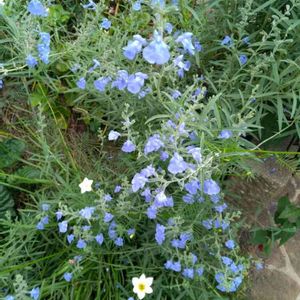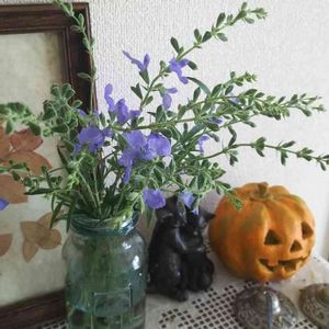今日のお花……サルビア💙 これはサルビアアズレアさん💙 超暴れん坊で全体像が写せなくって💦 お迎えする時もビヨヨ~ンってなることは分かっていたけれど、この水色にどうしても惹かれて…… うちの小さな庭には向かないってことも分かっていたけれど…… 案の定の暴れっぷり(笑) 調べたら背丈の低い時から何度か剪定を繰り返したら 背が低めで花数も増えるらしい😅 この秋が終わったら引っこ抜いちゃうつもりだったけど もう1年様子みようかなぁ(。>ㅿ<。)