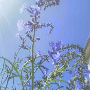 サルビア アズレア 今年9月にお迎えした苗がすくすく育ち、花一杯になってきたら、穂先が重くなるのか、ビョーンと横に伸びてきてます😅 長く伸びるということで、100均の朝顔支柱の中に植えてましたが、全然足りてません💦 でも、この色とそよそよ揺れる姿がいいよね…💙