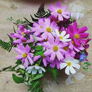 お庭のコスモスで花束作りました。
