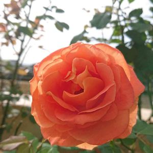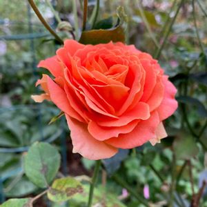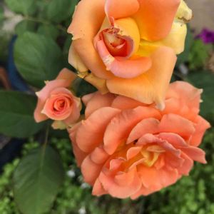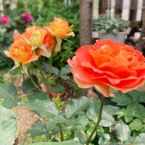 ブラスバンド🌹鮮やかなオレンジからアプリコットに色が変化してフリルが出てくる。花もちの良いバラです。ピンク系が多い庭の差し色になってくれています。