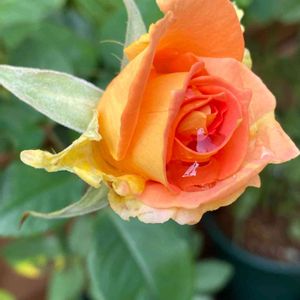 こんばんは😓 涙を浮かべるわたし…ではなく、雨に濡れたブラスバンド🧡 明日は咲いてくれるかな❓