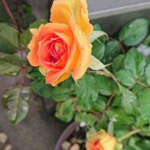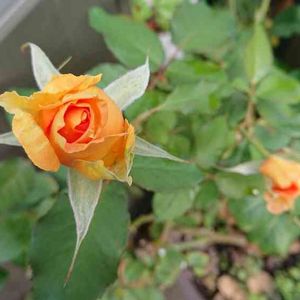 今朝の薔薇🌹🌹🌹 ブラスバンドさん🌹🌹🌹 オレンジの色合いがとても良い。花弁の裏は黄色ちょっと不思議
