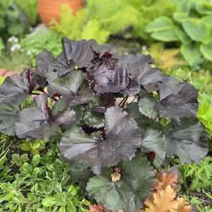 私の銅葉コレクションの一つ、リグラリア“ブリットマリークロフォード” 妙にヨーロッパの貴族っぽいお名前だけど、要するに銅葉のツワブキだっ! いい仕事してます。 陽当たりのいい所では葉っぱがとても黒くなるのですが、水切れしやすい😓 そこで日影にお引っ越しして3年目。水切れはしなくなったものの、色が今一つ…今年は緑味が強いなぁ😥 どこが一番いいのかなぁ。