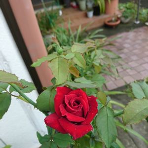 お友達から貰った挿し木7本中3本成功してもう5年🤗 去年から本格的に薔薇にハマりました✨ 今は鉢植えが5 地植えのノイバラを育てています🌹 この薔薇は去年お迎えしました✨ 蕾が沢山付きました❗