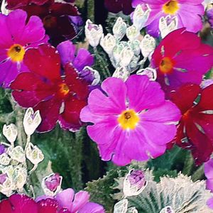 庭のサクラソウ 濃い色も可愛く 咲きました。