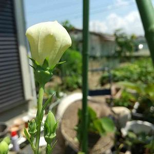 お疲れ様です😃 2年目の 白いキキョウのつぼみです。 奥に写ってるチェリーセージが 大暴れしてたせいか 時間がかかりました😅 ちなみに、チェリーセージは 花数が減ってきたので 今日、バッサリとカット✂️して 少し早い夏休みを与えました😅