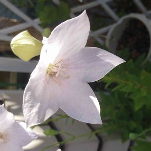白キキョウ(桔梗) 紫に遅れて 最後の一花開花中。。 白も楚々として綺麗です🤍