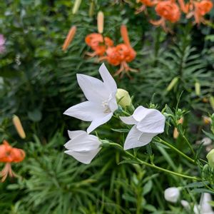 庭に、真っ白い桔梗が咲いていました。 安倍晋三元首相のご冥福をお祈りいたします。 頑張ろう❗日本‼️ 👊✨