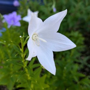 お出かけ先で会った白い⚪️「キキョウ」。 紫💜色の中で 清楚な感じでした🙋