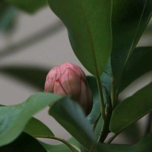 姫泰山木(ヒメタイサンボク) モクレン科モクレン属の半落葉高木。北アメリカ原産で昭和初期に渡来し、庭や公園に植えられる。葉は光沢がある長楕円形。葉裏が白い毛で覆われるためウラジロタイサンボクの別名もある。原産地では常緑だが、日本では一部紅葉し落葉する。花期は6月。直径10㎝前後の白花を上向きに咲かせる。花被片は6~15枚。果実は袋果。熟すと裂けて赤い種子を出す。 本種より大形でよく似た泰山木(タイサンボク)は、北アメリカ原産で明治時代初期に渡来し『大山木(タイサンボク)』と名付けられた。その後、小石川植物園の園芸主任を務めた松坂直枝が1932(昭和7)年刊行の本で、司馬遷(しばせん💬中国、前漢の歴史家)の漢詩の一部が転じた『義は泰山より重し』という言葉から泰山木の字を提案した。本種は同属のタイサンボクより樹高や花が小さいことから姫がつきヒメタイサンボクの名がついた。 出典『身近な樹木図鑑』『草木の種子と果実』『樹木の名前 』