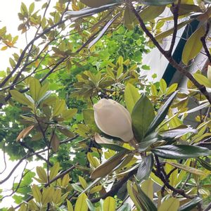 姫泰山木 京都府立植物園の北川通りのボタニカル・ウィンドウに植わっていました。 大きな泰山木にも小さな姫があるのですね~🥸