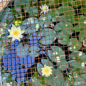 ミニ睡蓮が咲いています。 ほったらかしなんだけどぼちぼち咲きます。 野良猫や鳥対策でバーベキュー綱を載せてあるのだけど網目を掻い潜って咲くなんて賢い。一度網を外したらもう網目には入らなくなりました🤣 睡蓮鉢には金魚コメットが2匹 レモンコメットは金色なんだけど赤っぽく見えます。大きくなってきたので広い鉢に引っ越そうかなあ😊