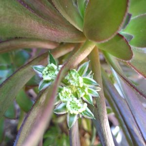 黒法師に初めて花が付きました。可愛いお花ですね💕 小さな庭に色々なお花が咲き 水やりも楽しくなりました🙌 お詫び🙏 黒法師の花では有りませんでした。 オルレアの種が飛んで下からの開花のようです😅