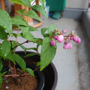 サクラウツギ(桜空木) アジサイ科 落葉低木 原産地 日本 ウツギの交配種 ピンクと白の配色が綺麗だったので 友人に挿し穂を頂き揷し木しました。 🌱🌱🤗 鉢植えです。まだ丈は15センチ位です, 咲きました!😊✨ヽ(^^)ノ🌸🌸🎶