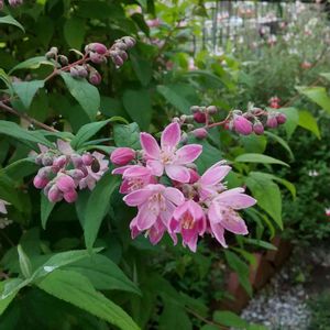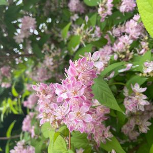 おはようございます😃 ピンク色の、美しいウツギに、出会いました。これが、サクラウツギでしょうか?