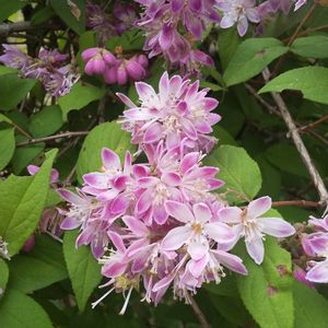 おはようございます。 ウツギ ラズベリーサンデーが開花して来ました。 可愛いでしょう🩷😍 今年はふた枝咲いています🌸💓