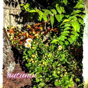 おはようございます☀ 今日も明るい太陽の光に元気を頂いています 庭の隅の方で小菊も咲き始めました 後ろのブルーベリーの葉っぱも紅葉してきています 庭も秋模様🍁🍁🍁