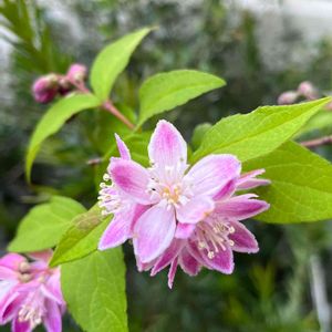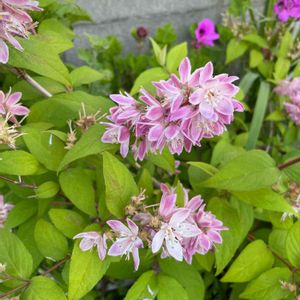 サクラウツギ🌸 お出かけ先のお店の庭木に 可愛いピンクのお花を 見つけました💕 調べたら、サクラウツギ🌸と 出ました。合ってるかな?? 花びらの形は サクラ🌸みたいですね!! "ι(ꈍ ᵕ ꈍ )ᰔᩚ♡