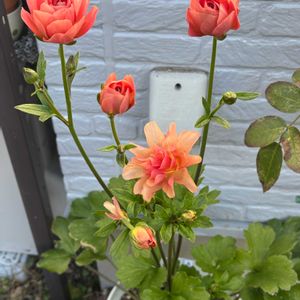 先日購入したラックスのエリスが開花してきました🌸 去年は強風でエリスとガラテアが根元から折れてしまったので🌀💦支柱を立ててます🍀*゜