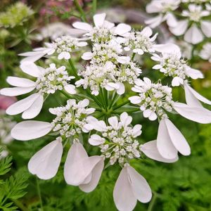 涼しげな🤍🤍🤍🤍🤍 ˚*.꒰ オルレア ꒱.*˚ 春頃、花友さんから 「レースフラワーだよ、 こぼれ種からでも増えるよー」って種をもらって植えたら咲いちゃった😀! もう既に種も出来かけてるのでうまく行けば10月頃の秋撒きにつながるかも!!
