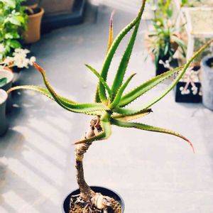 アロエ・アルビフローラ (雪女王) GSで皆さんのカッコ良いアガベを見ては、「欲しい!欲しい!」と思う毎日。 そしてついに「アガベを手に入れる!」と一念発起して植物ショップに行ったところ、いきなりコレに出逢ってしまいました😆 アガベはもう少し皆さんの投稿を見て研究いたします😦