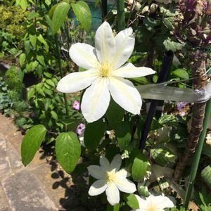 白のクレマチス。さっき雨がうるさくて目が覚めました。思いっきり雨に打たれたのでダメージ出ますね