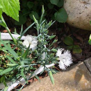 零れ種からの実生のカワラナデシコ。白花ですね。去年は白とピンクをやってましたが、ピンクは出ないのかな? 鉢植えの親株は経年寿命でなくなりました。 なので今年はここから花付きが良くなるように期待してます