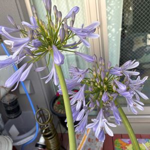 一度も咲いたのを見たことがなかったけど、国道沿いに生えていて道路整備で引き抜かれたものをいただいて、2年目でやっとお花を見せてくれました♪淡い紫でアガパンサスの気品を感じます🪻