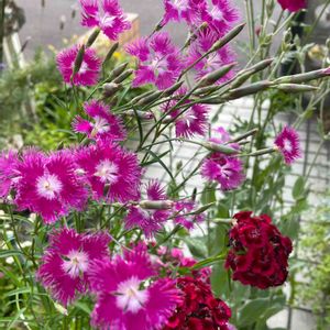 我が家のナデシコいろいろ🌸🌸🌸 冬越ししたダイアサンスと カワラナデシコ今次々と開花(*´∇`*) 種蒔きから育てた美女ナデシコも真っ赤な お花が咲きました❤️ でも花殻摘みの後 次の開花を待ってる けど中々咲かない💦