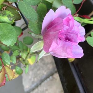バラ レイニーブルーさん💕 今朝は複数枚投稿ができないので、予定変更🤦♀️ 悩んだ結果、最新の先ほど撮ったレイニーブルーさんに この子は本当にポツポツ咲き😂 雨も当たらないけれど、日当たりもあまり良くないからかしら🤔