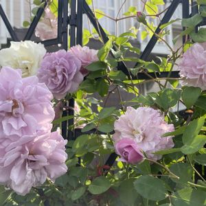 ブルーフォーユーさん💕 今朝ガク紫陽花さんを日陰にしてしまったブルーフォーユーさんの話をしましたが、その後庭に出ると先日2番花をガッツリ咲かせてくれたばかりなのに、もう次の準備をしていたので写真を撮りました🤳 横に広がって行き、シュートも出して何故か絶好調のようです😊 ②昨年秋にラ.パリジェンヌさんと間違えてお嫁に来てくれた子がこの春初めて咲きました🌹恐らくオデュッセイアではないかということです。確かに花びらがふりふりです😊でも色がピンクがかった赤🩷 まだまだとても小さいのに他に2つ蕾があったので、心を鬼にしてハサミでガッツリ蕾を切りました✂️もっと咲かせなくて済むようにチェックしてあげなきゃです😰 ③こちらも昨年秋にお嫁に来てくれたいおりちゃん この子は春にもお花を見たので、花友さんの助言も私自身の考えも秋までは咲かせないようにして株を大きくするつもりでした🤔 なのにこちらも咲いてしまいびっくりしました‼️ 咲いていることに驚き、次にその色の可愛さにも驚きました🫢 まだいおりちゃんの可愛い色を見慣れていないようです🥰✨ ④レイニーブルーさんもポツポツ咲いてくれています ポツポツで2番花と言えるほどの数ではありません😂 何だか今はそんな感じのお花が多いです😓 送ってくださった方から 和バラ友禅ではないか、との連絡をいただきました🌹