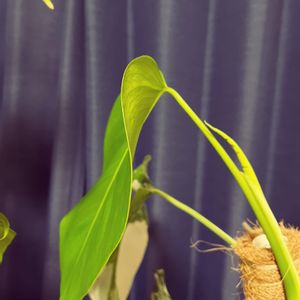 アンドレ、と 思わずつぶやいてしまう、 縦カールはオスカルか😄 新芽の展開は美しいね😍 半日陰の南玄関で 元気に育つ モンステラ・デリシオサ サトイモ科