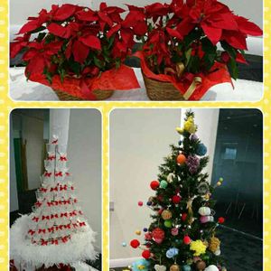 メリークリスマス🎄 久しぶりの投稿です✴️ なのに… ポインセチアはまだ緑色が目立ちます(T-T) もっと早くから処理を行うべきでした💧 ◯の中は裏側です。 赤いところが多かったので載せました(--;)