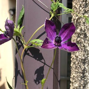 クレマチスのお花、蕾が上がったのも気が付かず、知らない間に咲いていました〜綺麗な紫色です✨💜💜💜💫