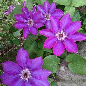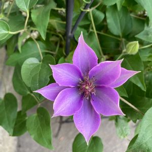 クレマチス🌸🌿⑧ ザ・ファーストレディ 昨年お迎えし、花後に地植えにしました。 花数も3倍に増えています♪ ラベンダー色地に赤紫色の筋入りで花芯は赤紫色。 花付きは良い品種のようです💕