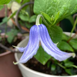 クレマチスミゼットブルー 春に半分以上切り戻したのに、グングン大きくなって、花が咲き出して来ました💜 井戸水のおかげでしょうか?