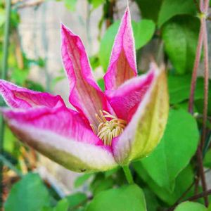 お疲れ様でーす🎵 今日はとーっても蒸し暑かったです💦 帰宅🏠️👣すると、そのまま庭パト🌿 今朝まで蕾だったクレマチスがほころび始めたよ🌺🌺🌺 今年の開花一番手はこの子です✨💕🌿
