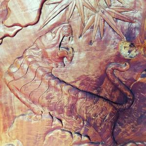 2022年 寅年 材質 欅 実家の玄関をはいると こちらの寅がお出迎え🐯ガォー ちょうど人の背丈くらいあるので この後ろにそっと隠れて、聞き耳を立てると お客さまと母の長話がどのくらいで終わるかがわかります😼 寅年にぴったり✨🐯✨