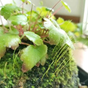 ん? なんだ? 大文字草の苔玉から… 🌱🌱🌱 びょ~んと これ、これからどうなるんでしょ?🤭