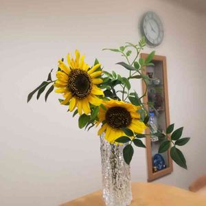 いただいたヒマワリ。 部屋の中にも太陽が届いたようです。嬉しいのでpic ! 顔が下向きで…花瓶に入れるのに困ってしまいましたが、ソケイの枝があったので、頭を枝にヨイショして留めました😜