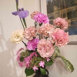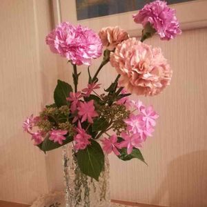 たくさん、カーネーション🎵 季節のお花をいただきましたので、思いきって派手に入れてみました。 ひとつひとつが、大きくてかわいいカーネーションたち。 眺めているだけで、楽しい気持ちになります。