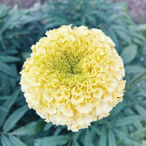 アフリカンマリーゴールド🌱バニラ 🪴種蒔き組 アフリカンの一番花💛 やっと咲いてくれました〜😄 まだ草丈30㌢くらい🌱とてもかわいい。フレンチとアフリカン同時に種蒔きしたのに、フレンチはだいぶ以前から花盛り🌼🏵️