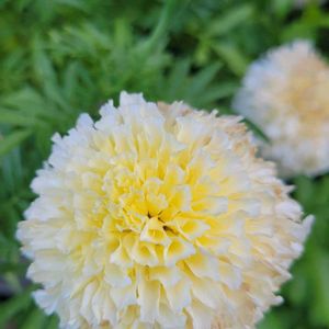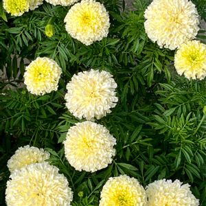 今日のお花『マリーゴールド』 こぼれ種のアフリカンマリーゴールドです⚪️🟡⚪️🟡 固い土の所に出てきた割には良く咲いています。根っこが思いきり張れないからか?背も高くならず、私にとってはちょうど良い高さです👍 毎年こぼれ種出ないかな〜🌱🌱🌱
