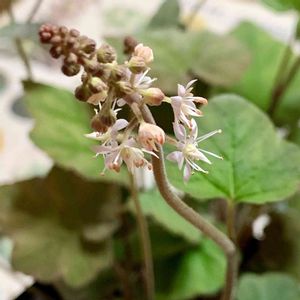 ヒューケラ ファイヤーアラーム 殆どお世話が要らず 乾燥にも強く半日陰でも大丈夫! 耐寒性もあります。 赤系のカラーリーフはひときわ目立つ暖色系で 冬の寂しいお庭の花壇でいい仕事をしてくれます。 お花も咲いて かわいい〜*ˊᵕˋ*❤︎*。 小さなお花なので マクロレンズで撮りました。