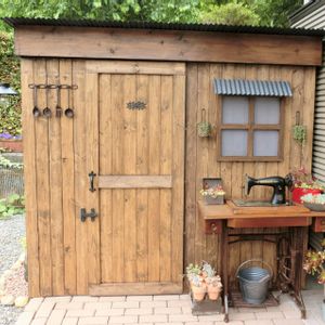 シェッド。週末ごとに少しずつ進んでいます。 ドア、まだ付いてないけど形になってきました。 つるバラも注文したし夢は広がる〜。