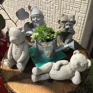 ワンダーデコールで購入した人形達は表情豊かで可愛いです。 今日もお庭の手入れ日和ですね!