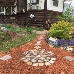 残り物の石でアートしました。 瓦砂利は小さくて歩きやすいし、水はけもヨシ!